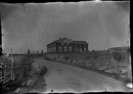 Ämnesord: skolbyggnader, kultur, staket, byggd miljö, timmerbyggnad, landsvägar |