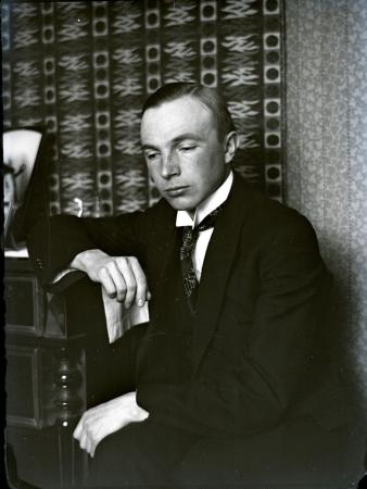 Ämnesord: porträttfotografering, festkläder, slipsar, väggtextilier |