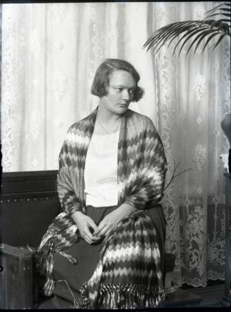 Ämnesord: kvinnor, interiörer, porträttfotografering, hem, sjalar |