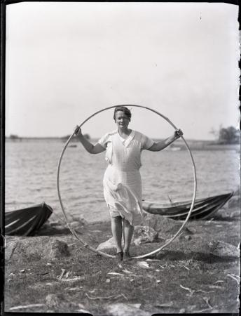 Ämnesord: kvinnor, allmogebåtar, sommar, hav, stränder, ryssjor, roddbåtar |