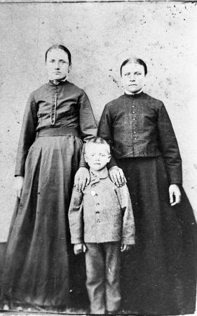 Gossen Oskar Wester (1886-1963) med sin moster Emma (1867-1948) Snickars och mor Henrika (1863-1950) Wester, "Vestärstu Hindriika"".