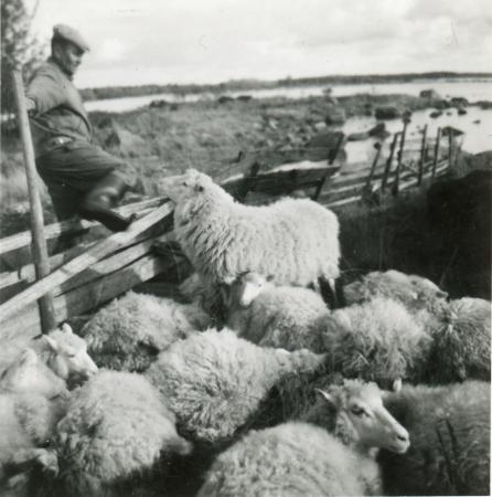 Ämnesord: skärgårdar, inhägnader, får, ullklippning |
