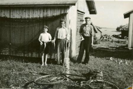 Ämnesord: ungdomar, pojkar, sommar, fisknät, fisk (livsmedel), cykel, båthus, abborre |