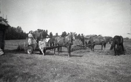 Ämnesord: ängar, häst, höbärgning, slåtter, hästdragna maskiner |