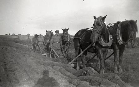 Ämnesord: soldater, häst, uniformer, plöjning |
