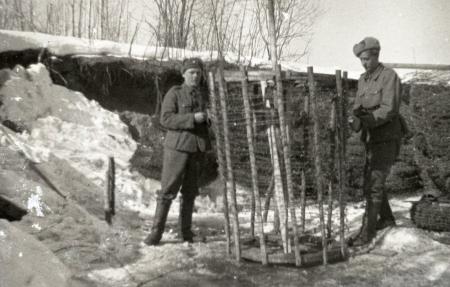 Ämnesord: krig, soldater, uniformer, vinter, taggtråd, hinder |
