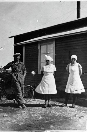 Ämnesord: mejeriarbetare, arbetskläder, mejerier, mejerister, cykel |