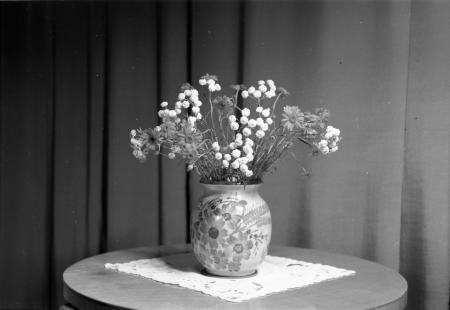 Ämnesord: vaser (kärl), blommor (växtdelar), blomsterarrangemang |