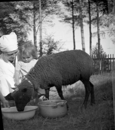 Ämnesord: får, tjänstedräkter, förskolebarn (2-5 är), utfodring |