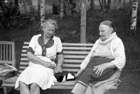 Ämnesord: kvinnor, soffor, utemöbler, katt, åldringar |